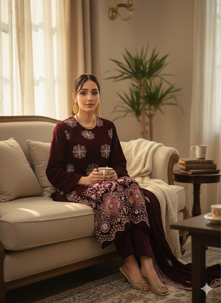 Wrap yourself in warmth and elegance with this stunning Dhanak 4-Piece Suit, designed to bring comfort and style to your winter wardrobe. Made from premium dhanak fabric, this suit offers a soft, cozy texture while maintaining a refined and graceful look.